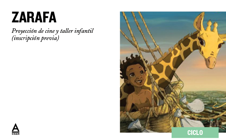 Proyección de la película de animación francesa Zarafa, que relata una historia inspirada en un hecho histórico; el viaje de la primera jirafa transportada desde África a París. Taller infantil relacionado con la película, con el objetivo de despertar en ellos el interés por la Arquitectura y la ciudad.