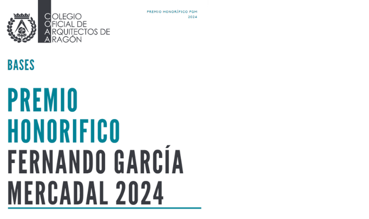 BASES en la web del COA Aragón: https://www.coaaragon.es/noticia/lanzamiento-de-las-bases-del-premio-honorifico-fgm-del-coaa-2024