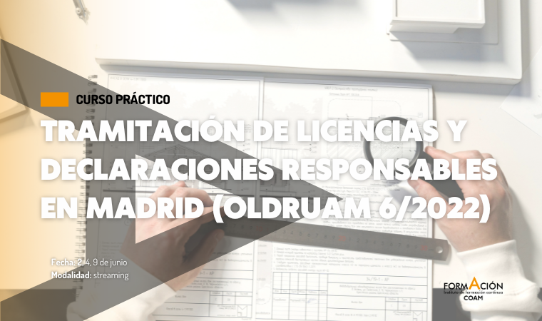 El Instituto de Formación Continua COAM organiza el curso práctico en Tramitación de Licencias y Declaraciones Responsables en Madrid (OLDRUAM 6/2022) para que sus alumnos aprendan a dominar la tramitación de licencias urbanísticas y declaraciones responsables según la Ordenanza 6/2022 del Ayuntamiento de Madrid. Se cursará los días 2, 4 y 9 de junio a través de streaming a través de la plataforma de aprendizaje del IFC COAM.