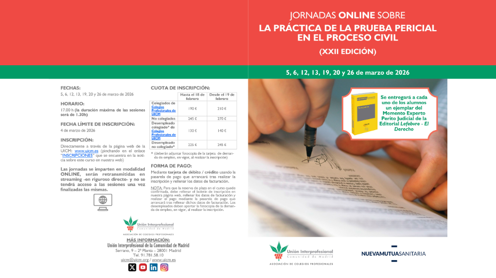 El curso proporcionará a los nuevos profesionales la suficiente formación básica en el ámbito de la prueba pericial y, a los profesionales más experimentados les facilitará reciclarse.
