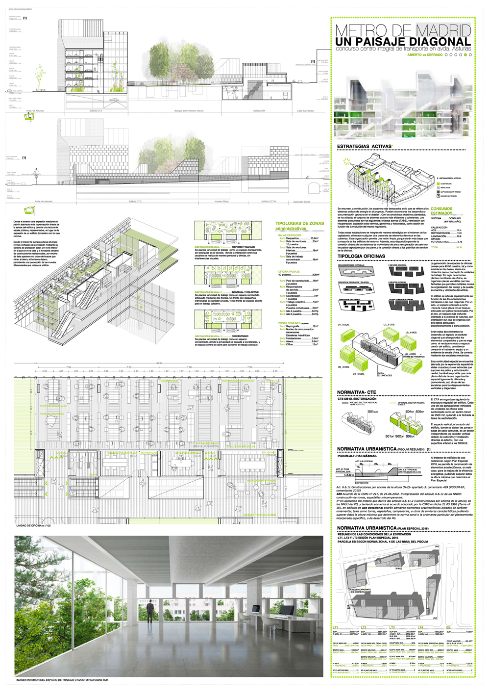 Tercer premioUn paisaje diagonalAutores: Aybar Mateos S.L.P.: Juan José Mateos Bermejo (representante de la empresa y director de proyecto), Camila Alejandra Aybar Rodríguez (director de proyecto) y Estudio Álvarez-Sala S.L.P.: Enrique Álvarez-Sala Walther (representante de la empresa)