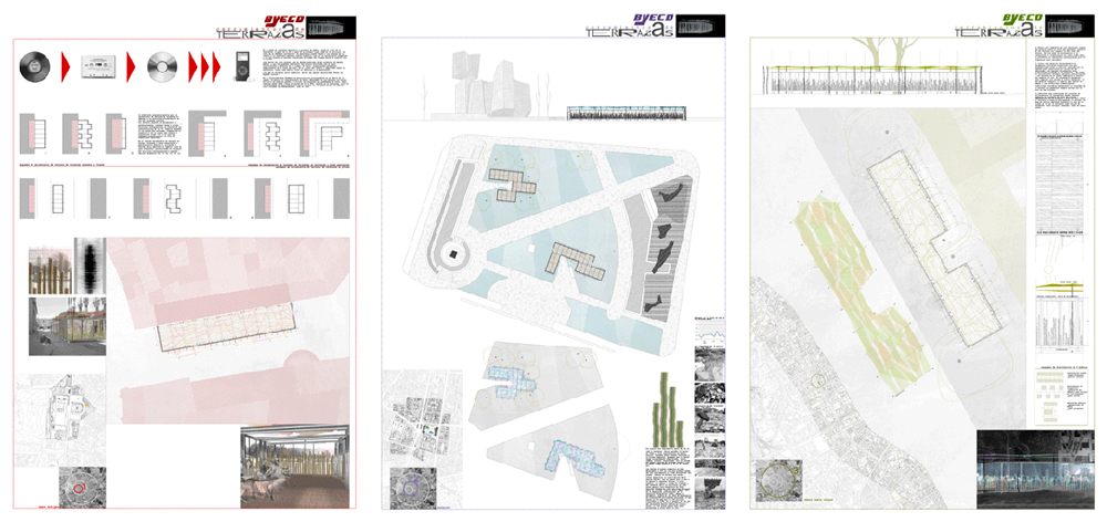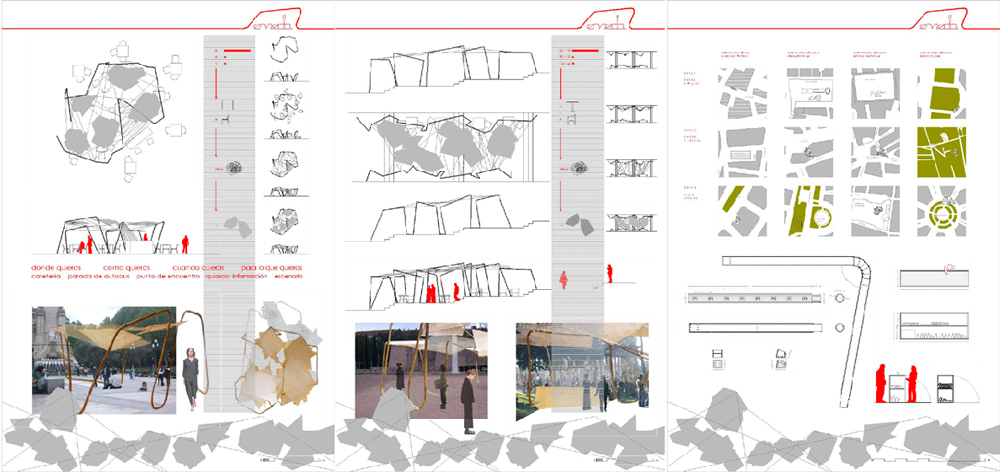 – 3 paneles DIN-A1, uno por cada una de las zonas objeto del concurso, maquetados en vertical y montados sobre cartón-pluma