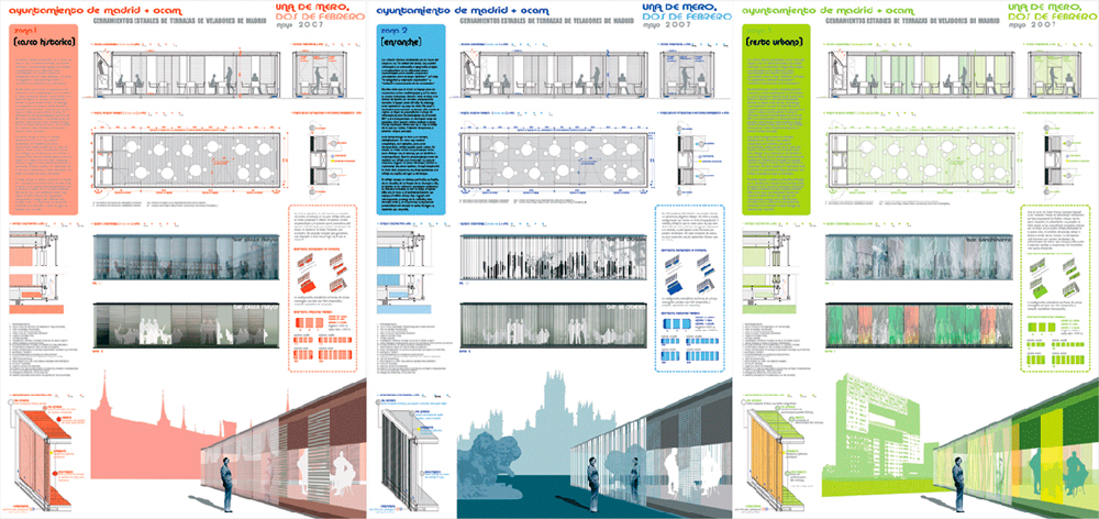 Definición estética y constructiva de prototipos de cerramientos estables de terrazas de veladores destinados a locales de restauración y para instalar en el espacio urbano de la ciudad de Madrid.