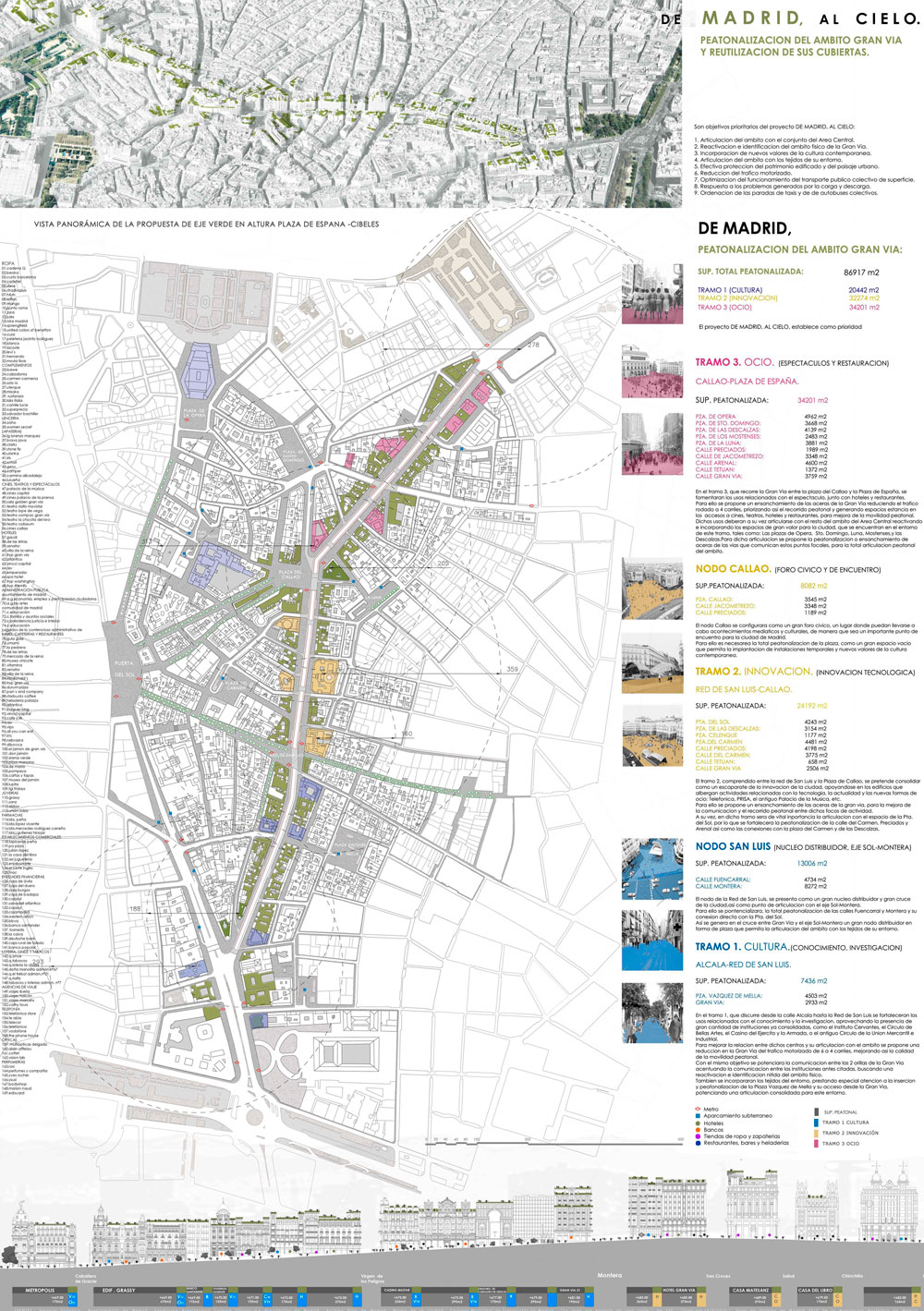 El objeto del concurso es la selección, por parte del Área de Gobierno de Urbanismo y Vivienda del Ayuntamiento de Madrid, de ideas de naturaleza urbanística y arquitectónica, que planteen un modelo de espacio e intervenciones (físicas o no) en el que debe concretarse el futuro del ámbito de la Gran Vía y sus espacios adyacentes.