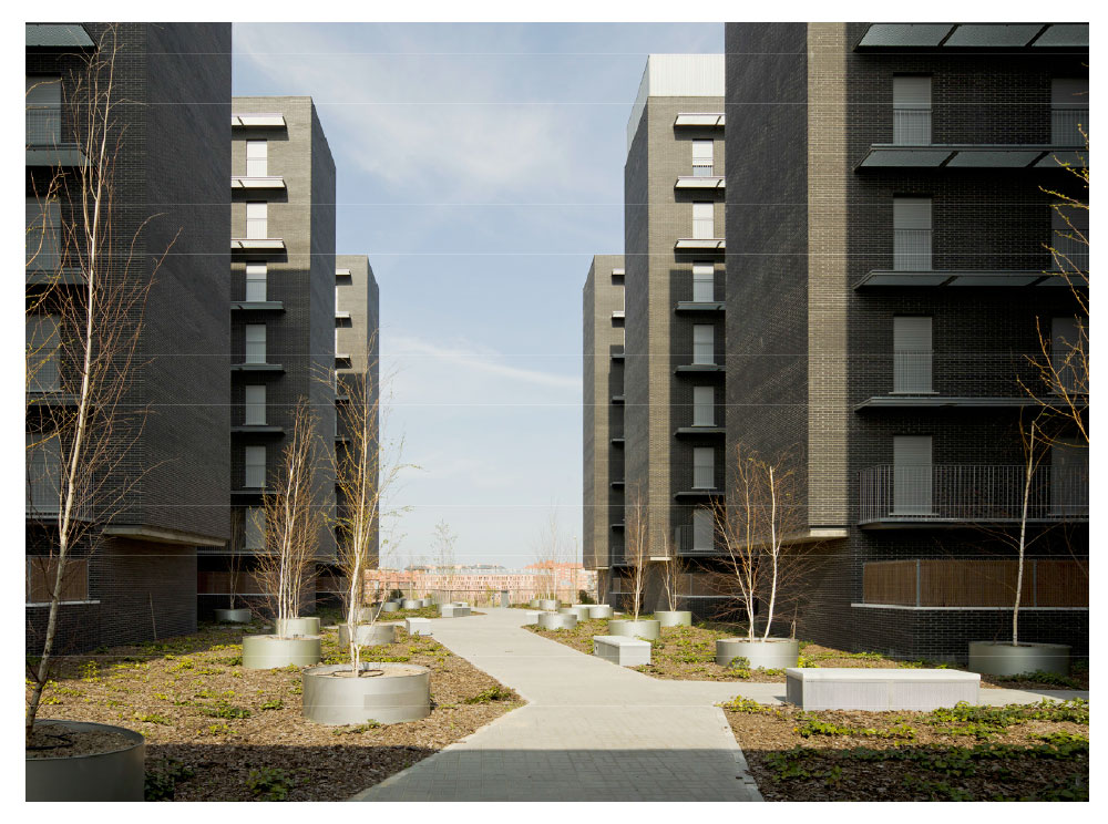 Premio COAM163 viviendas de protección pública en el Eco-Bulevar de VallecasAutores: Olalquiaga Arquitectos