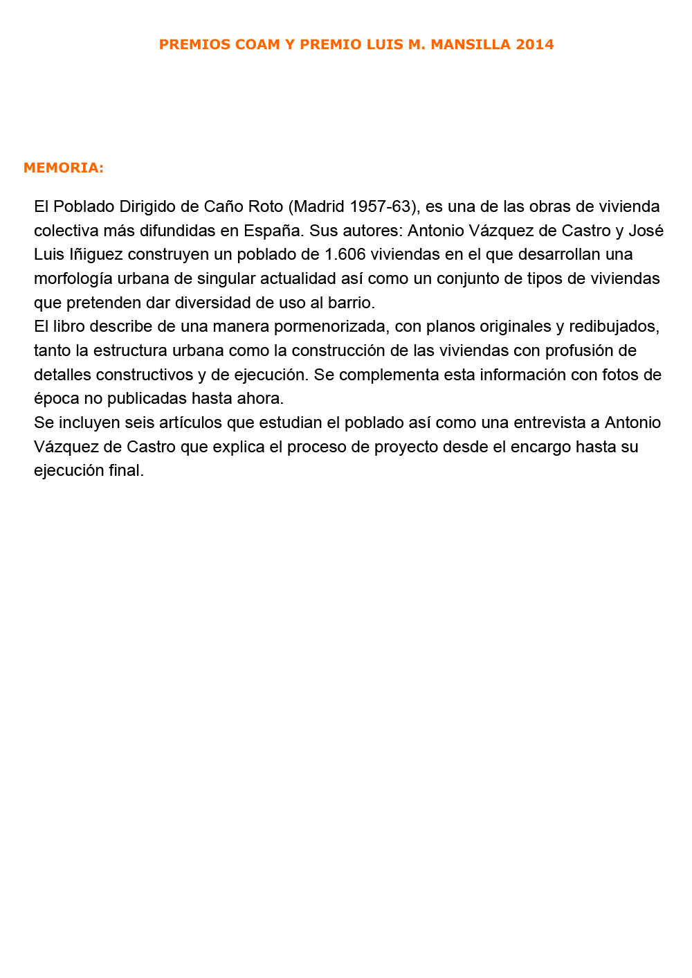 Convocatoria de los Premios COAM y el Premio Luis M. Mansilla 2014.