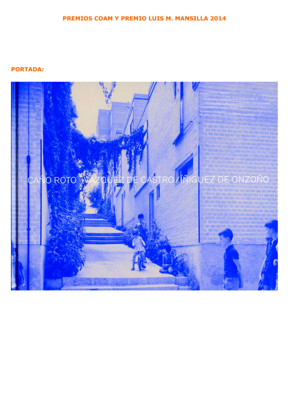 · Premio Luis M. Mansilla, a las obras, trabajos y actuaciones arquitectónicas realizadas por colegiados del COAM fuera de la Comunidad de Madrid.