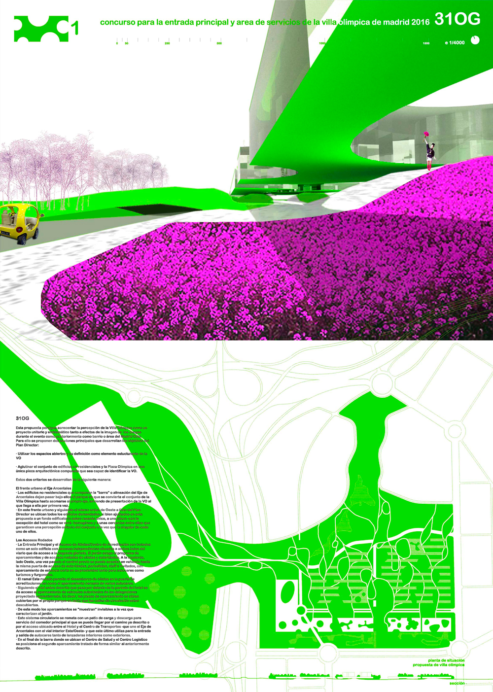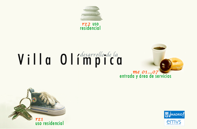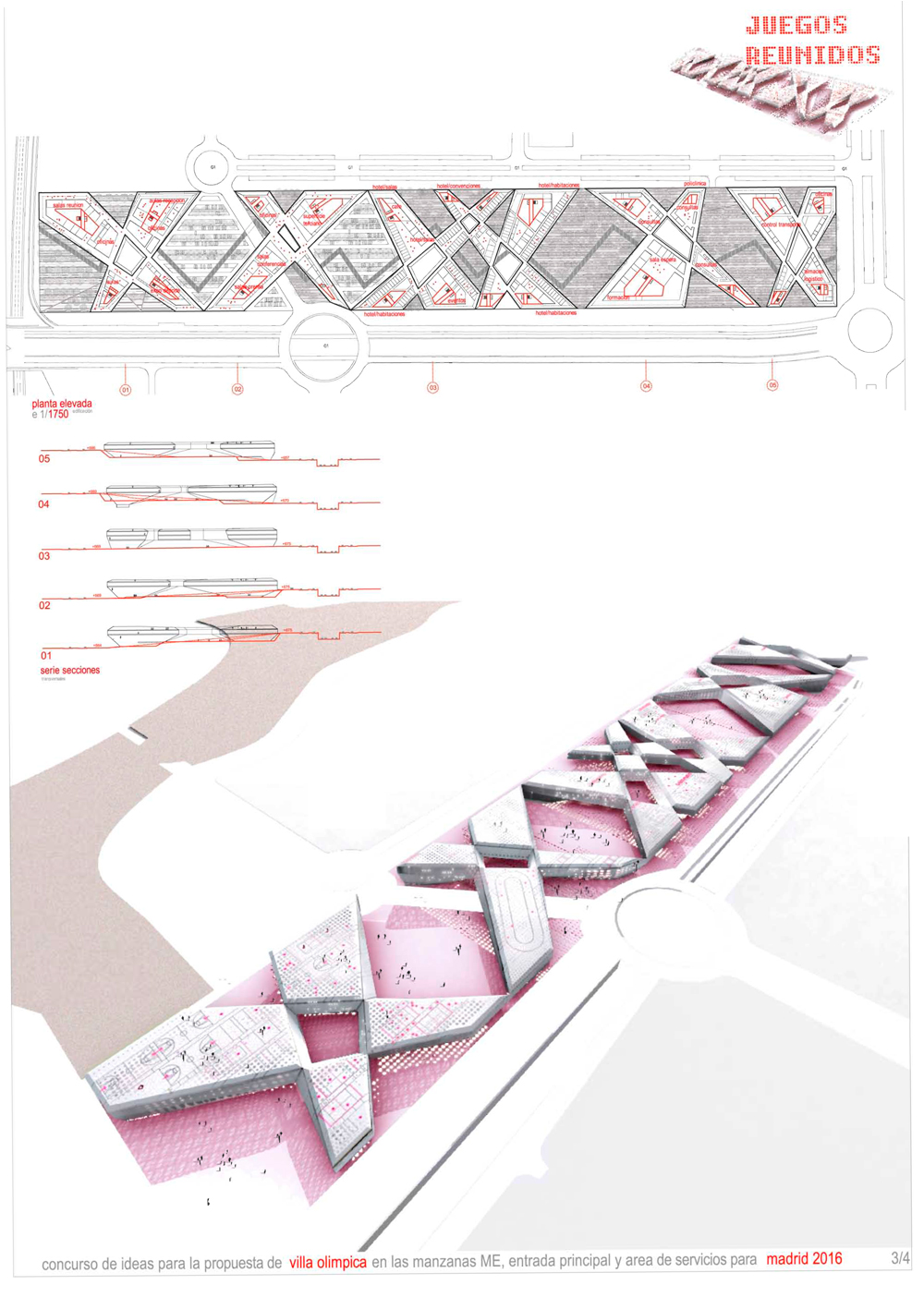 – Selección de la mejor propuesta arquitectónica para el desarrollo de la futuraVilla Olímpica en las manzanas ME01, ME02, ME03, ME04, ME05, ME06 Y ME07 (entrada principal y área de servicios) dentro de la ordenación prevista para Madrid 2016.