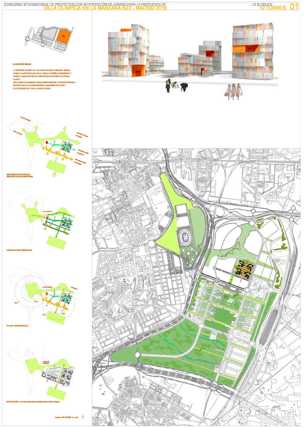 –  Selección de la mejor propuesta arquitectónica para el desarrollo de la futuraVilla Olímpica en la manzana rz 1 (uso característico residencial) dentro de la ordenación prevista para Madrid 2016.