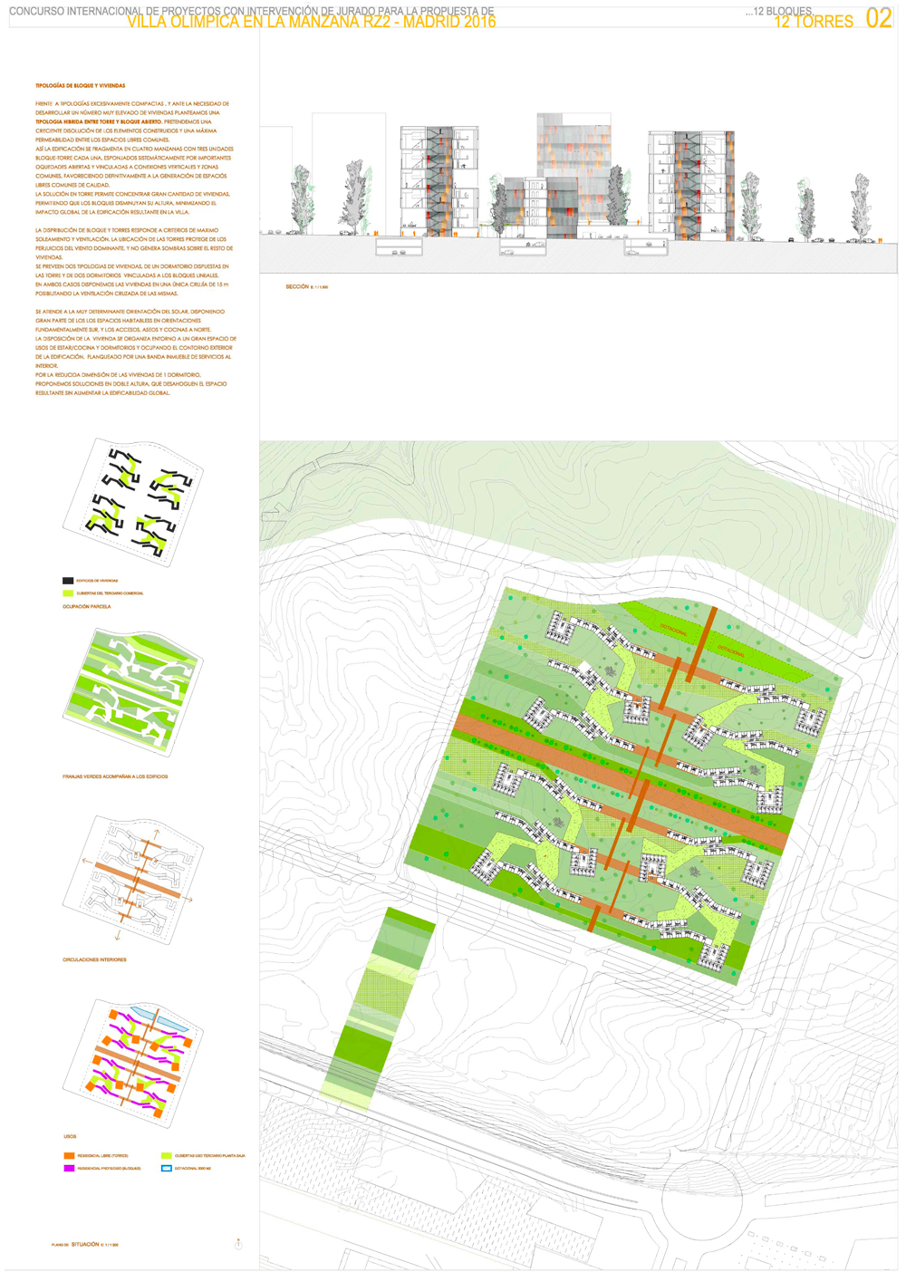 – Selección de la mejor propuesta arquitectónica para el desarrollo de la futuraVilla Olímpica en la manzana rz 2 (uso característico residencial) dentro de la ordenación prevista para Madrid 2016.