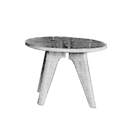 ---Mesita baja redonda de madera con tres patas.