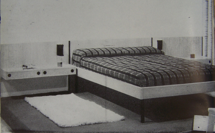 ---Dormitorio doble, cama de matrimonio, cabecero y mesita de noche incorporada.