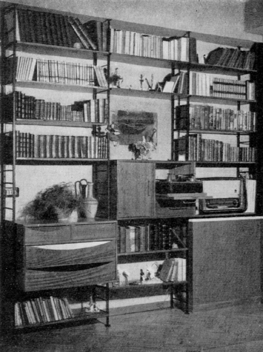 ---Estantería modelo de madera, realizando un juego de estantes con puertas y cajones.