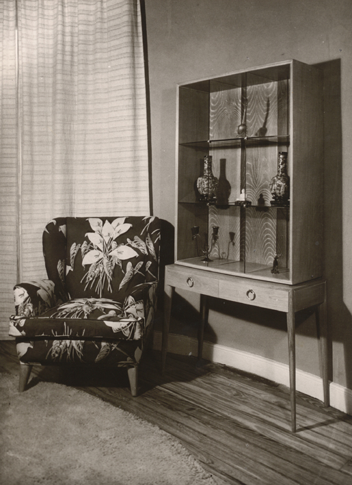 ---Mobiliario diseñado por Chozas: Sillón y vitrina.
