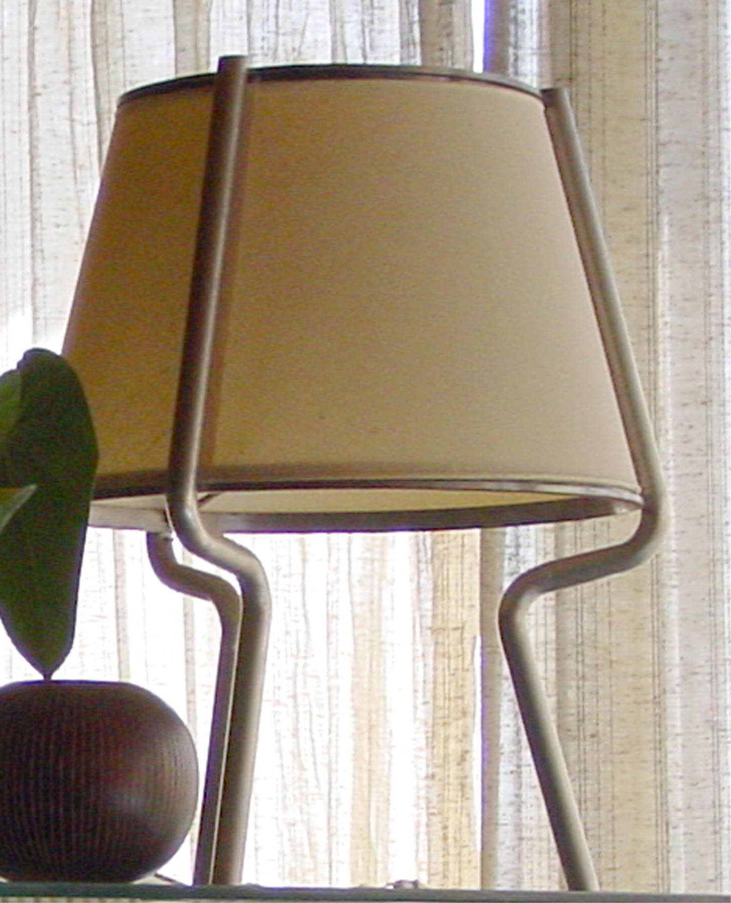 ---Lámpara de sobremesa con pantalla y estructura de metal.