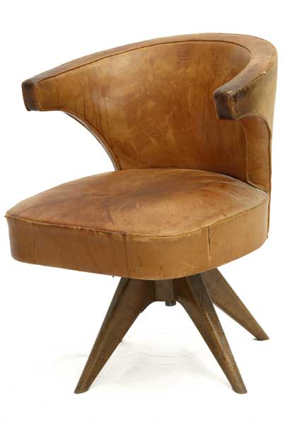 ---Asiento y respaldo tapizado en piel, con patas inclinadas. La ubicación original era el despacho del Secretario.