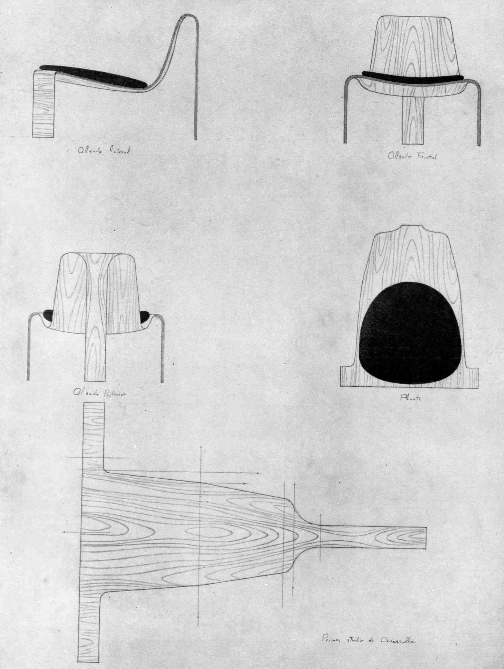 ---Diseño original de gran valor plástico que utiliza las propiedades de la madera moldeada prensada.