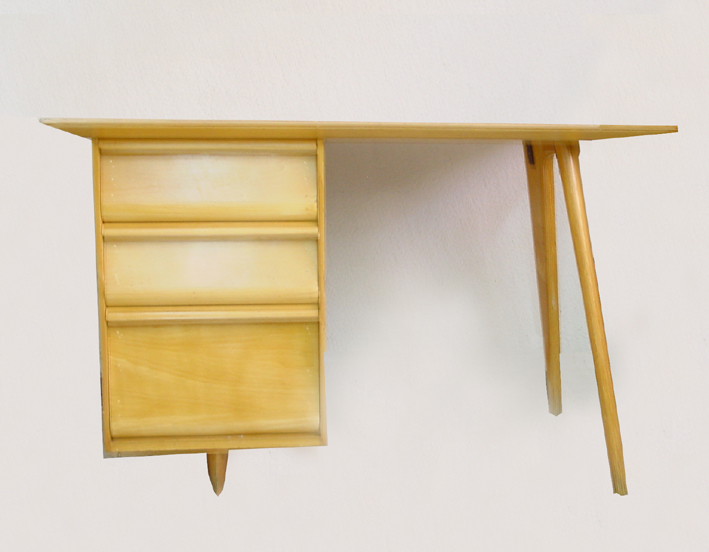 ---Con sobre, cajonera y patas inclinadas de madera estaba en el Despacho de la Secretaria del Director.