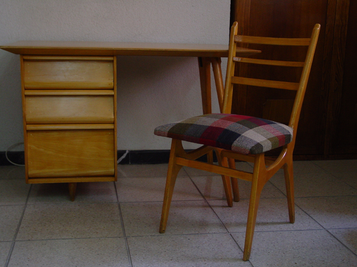 ---De madera con asiento de contrachapado o tapizado. Inicialmente estuvo en el comedor, para luego pasar al Despacho de la Secretaria del Director.