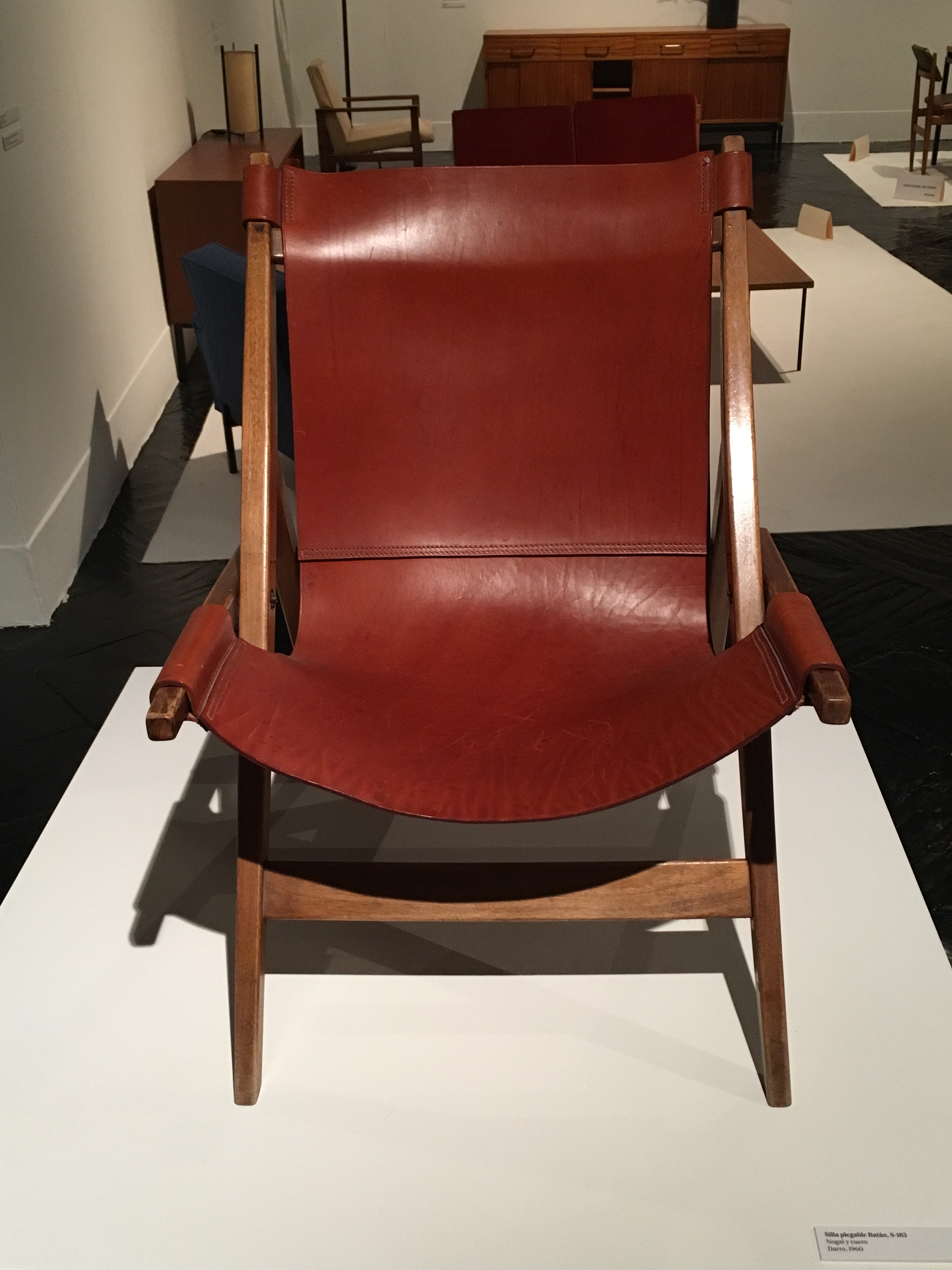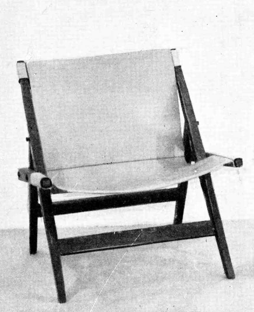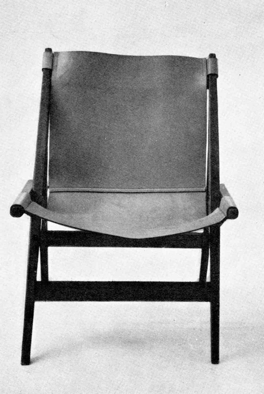 ---Estructura de madera de nogal, asiento y respaldo de piel natural cosida a mano con correas y hebillas, desarmable, con pasadores de acero empavonado.