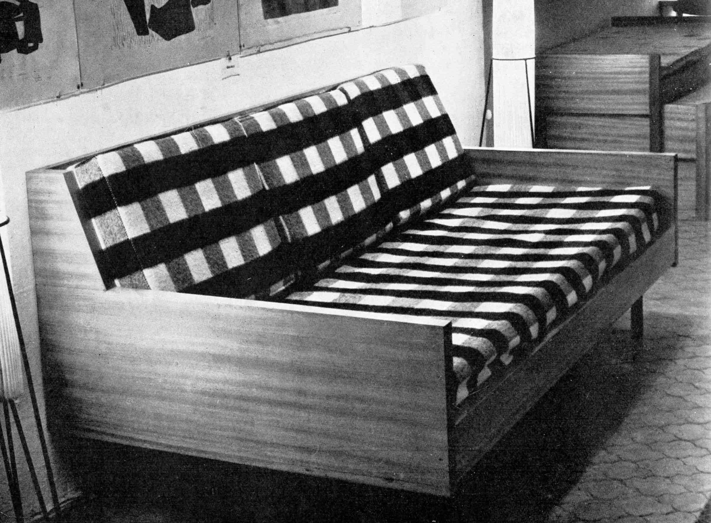 ---Construido en madera de embero y somier metálico plano, con almohadones de gomaespuma.
