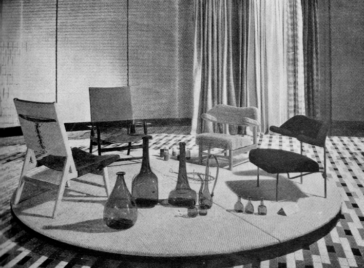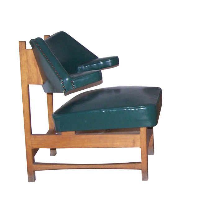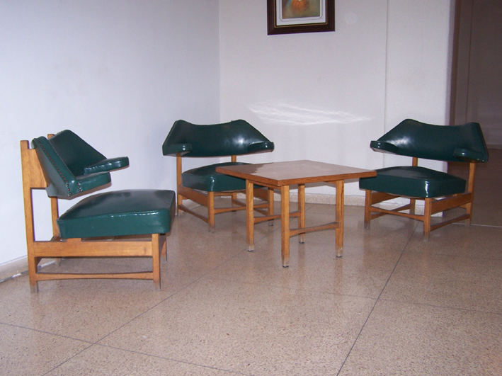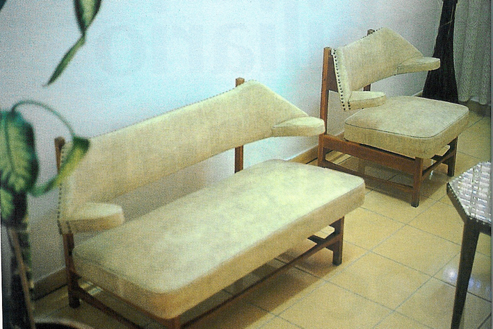 ---Estructura de madera. Aparecen con diferentes tapizados (cuero marrón, cuero verde, de piel de vaca…). De venta en Darro, 1958/1959. Fabricada por Casa y Jardín (en la Trienal 1957)