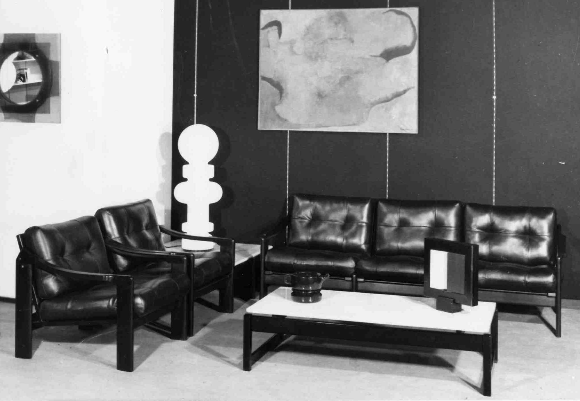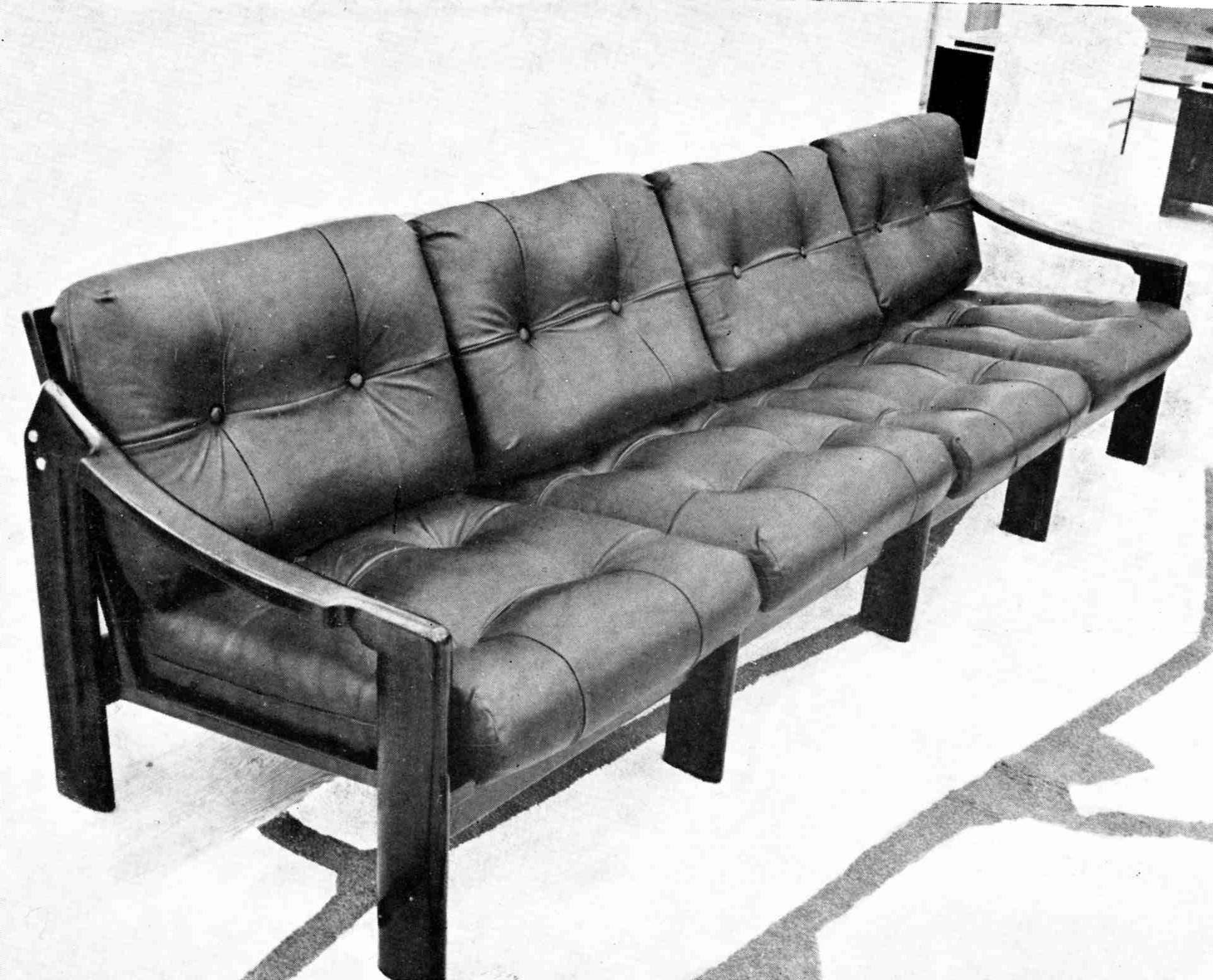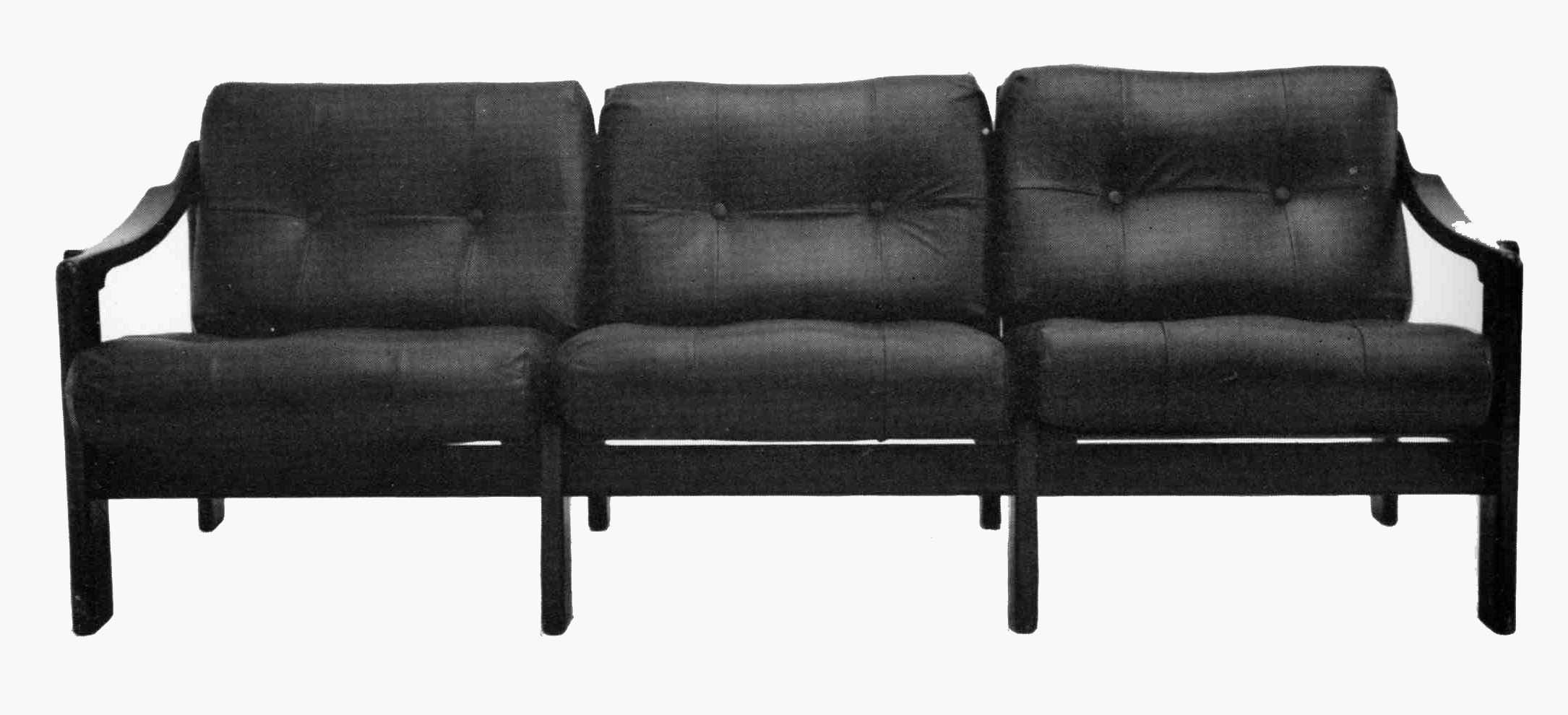 ---Sofá de tres o cuatro plazas con estructura de madera de ukola. Asiento y respaldo tapizados en polipiel.