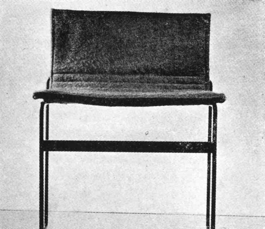 ---Varilla calibrada y pletina de acero y asiento y respaldo de médulo o tela.