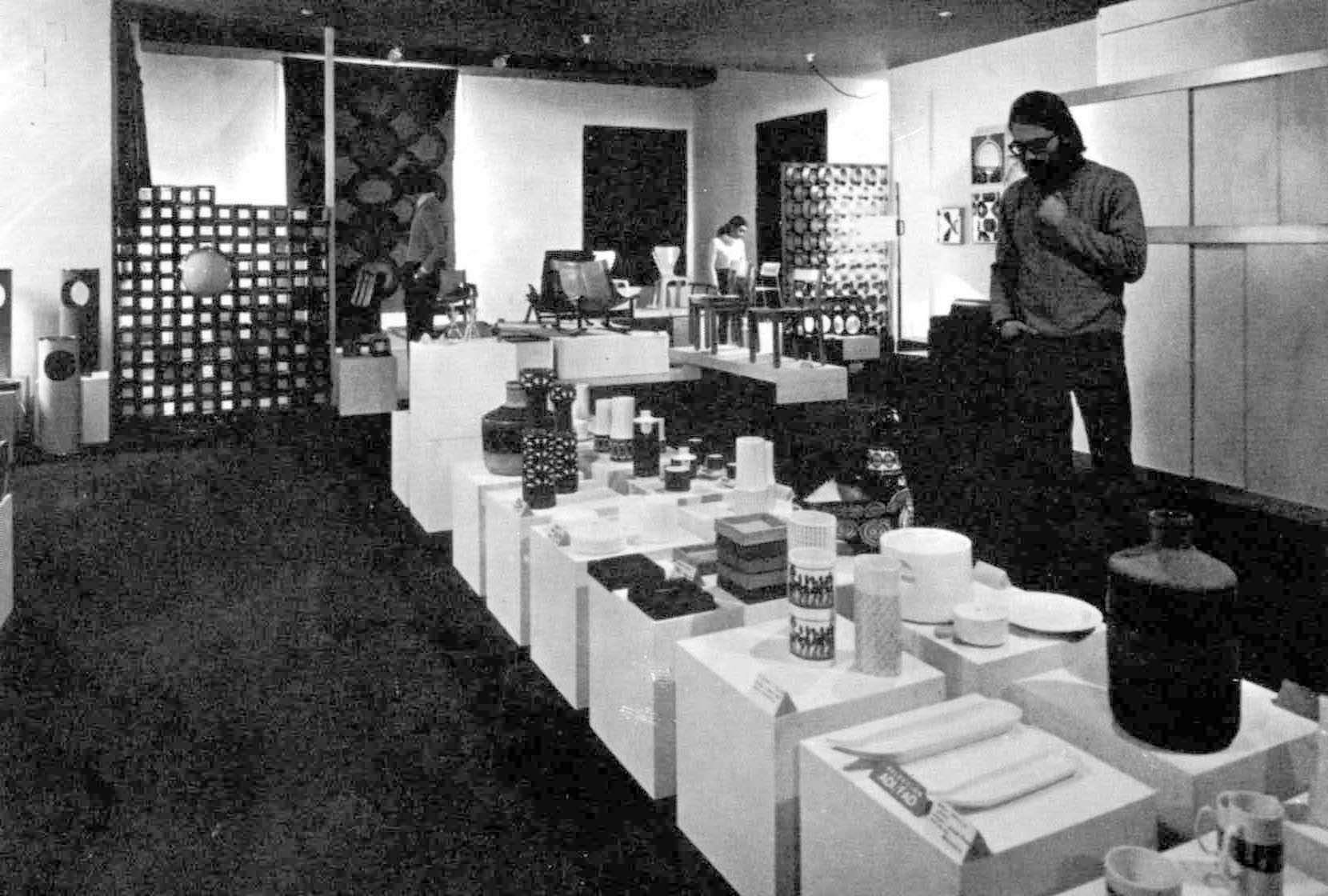 ---Fotografías de una exposición con mobiliario de diferentes firmas de la época: Darro, H. Muebles…