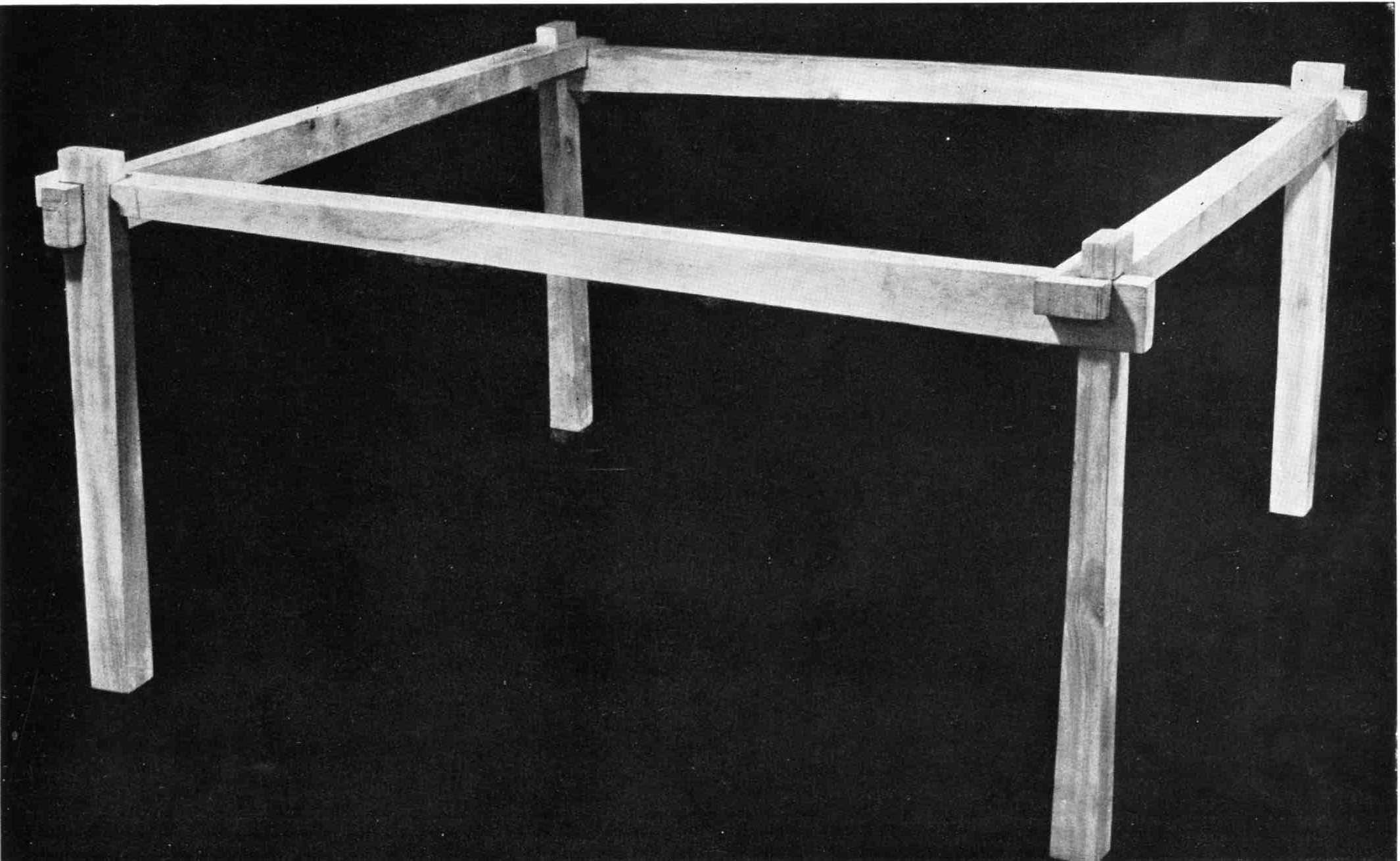 ---Estructura de mesa de madera, repetición elemental y diversidad direccional.