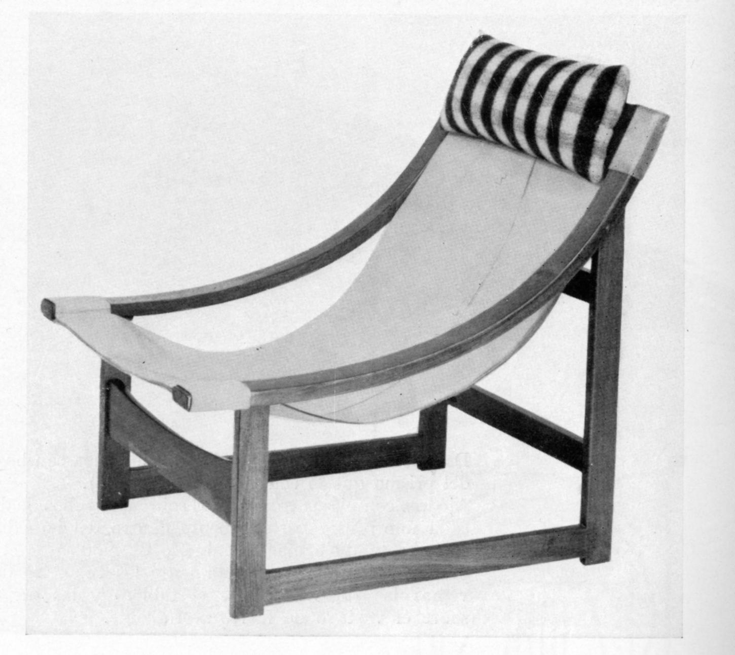---Estructura de madera, con asiento y respaldo de tela.