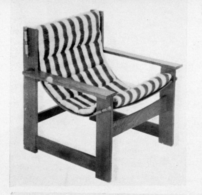 ---Estructura de madera, con asiento y respaldo de tela.
