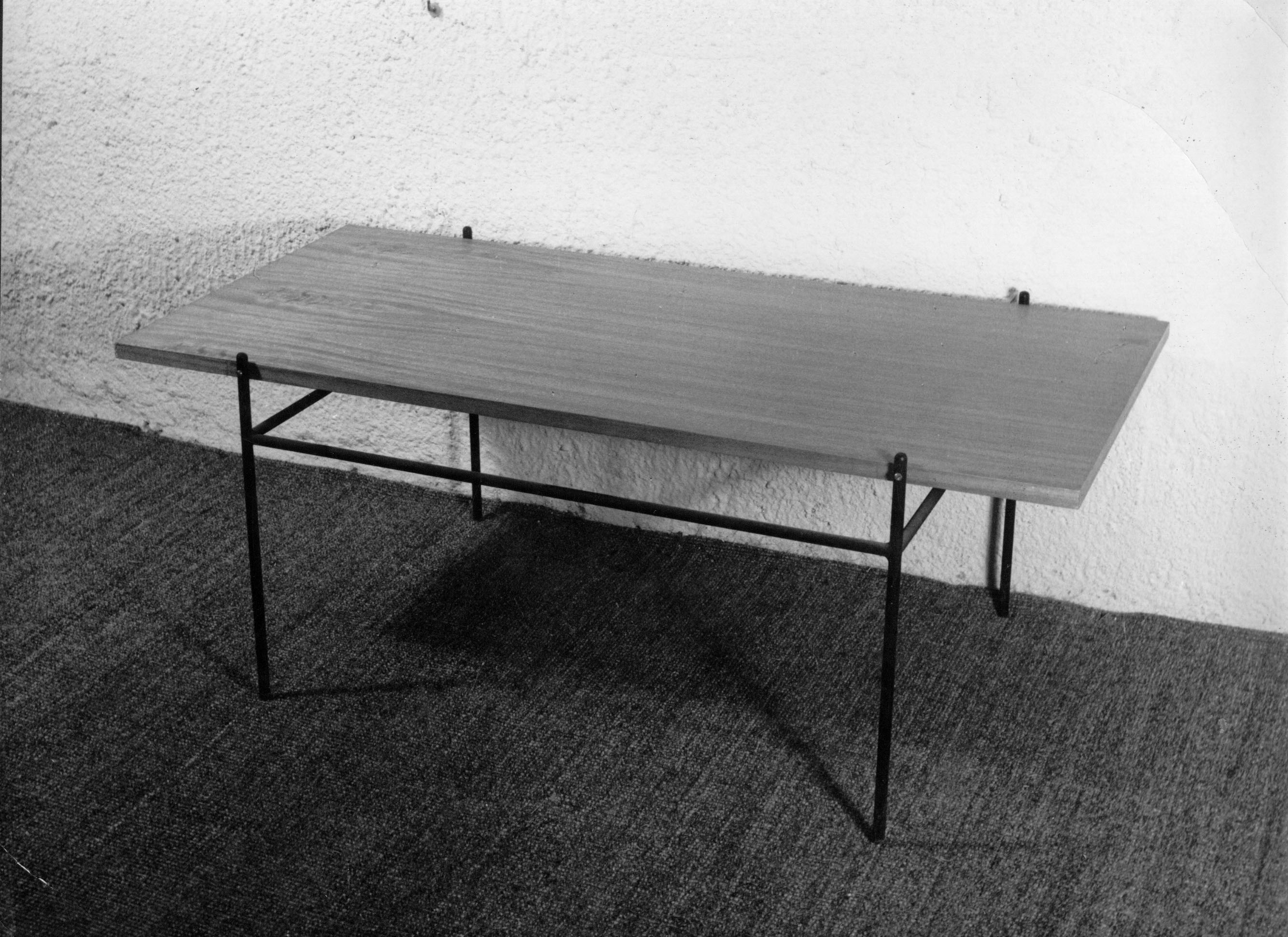 ---Armadura de tubo pintada en negro mate con tapa de madera de embero rectangular.