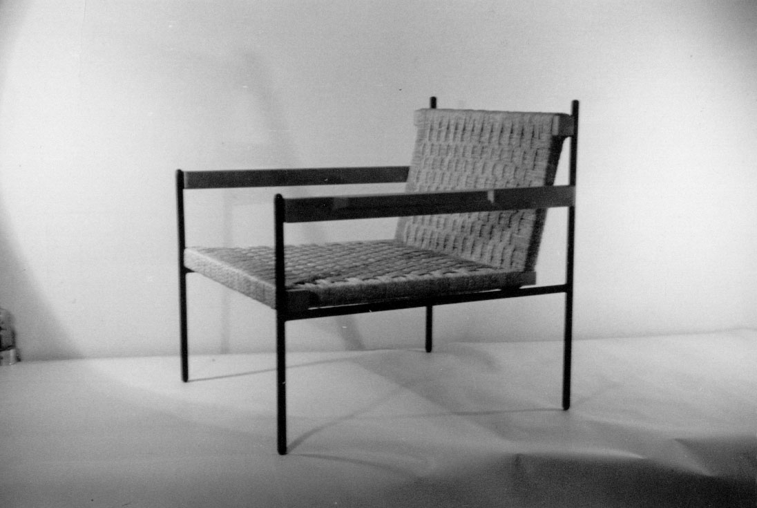 ---Sofá de dos plazas. Armadura de tubo pintada en negro mate y largueros de madera de encina con asiento y respaldo realizados en pita.