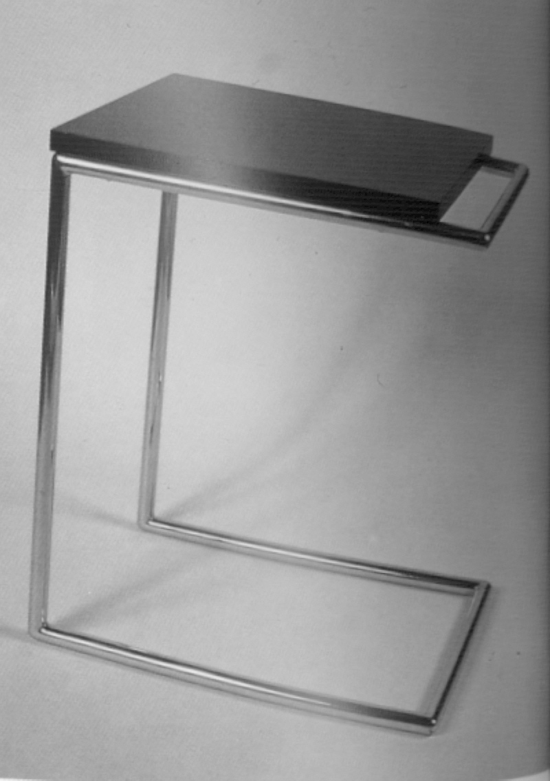---Tapa de madera de nogal teñida en negro con patas de tubo.
