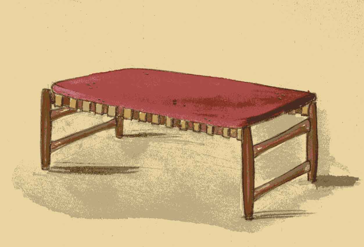 ---Asientos con cinchas de cuero. Patas torneadas, almohadón suelto de goma.