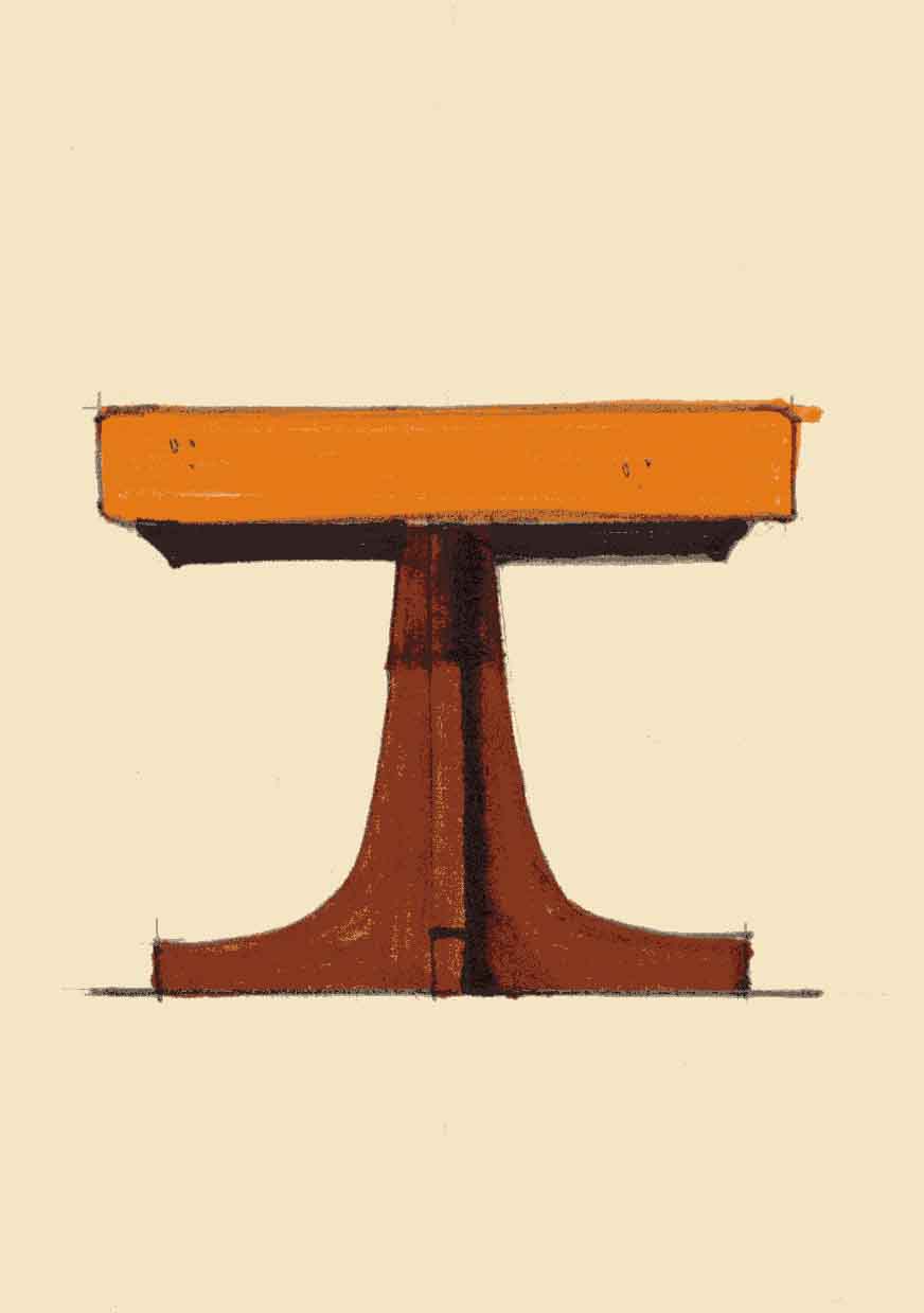 ---Pata central de madera en forma de aspa con asiento tapizado.