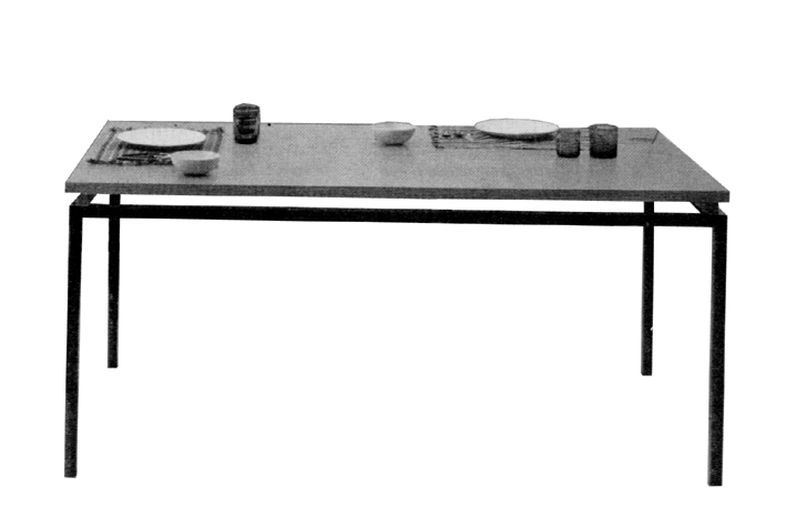 ---Con tablero rectangular de embero sobre patas metálicas de tubo de acero negro.