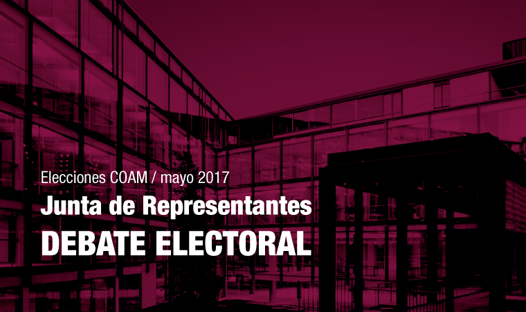 Si estás interesado en formular preguntas para que sean planteadas en el debate electoral, puedes enviarlas por correo ordinario dirigido al Registro del COAM (C/ Hortaleza, 63 28004 Madrid), presencialmente en la Secretaría General del COAM o por mail dirigido a secretariageneral@coam.org firmado digitalmente (DNIe, FNMT), hasta el viernes 12 de mayo, a las 14:00h.